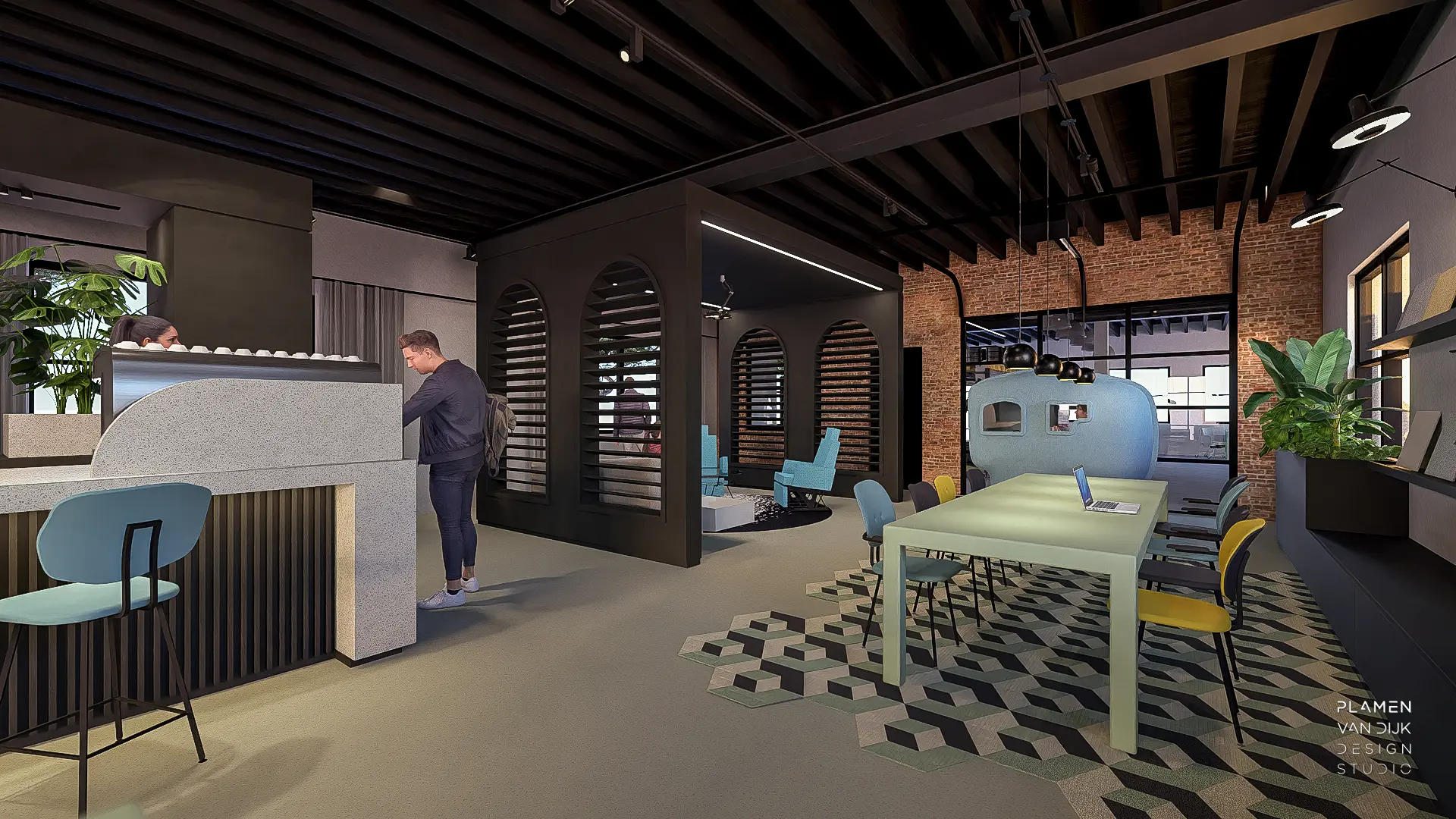 Conceptontwerp voor een nieuwe showroom van SENSO gietvloeren in samenwerking met designpartners Lensvelt Furniture, Modular Lighting Instruments voor locatie New York.