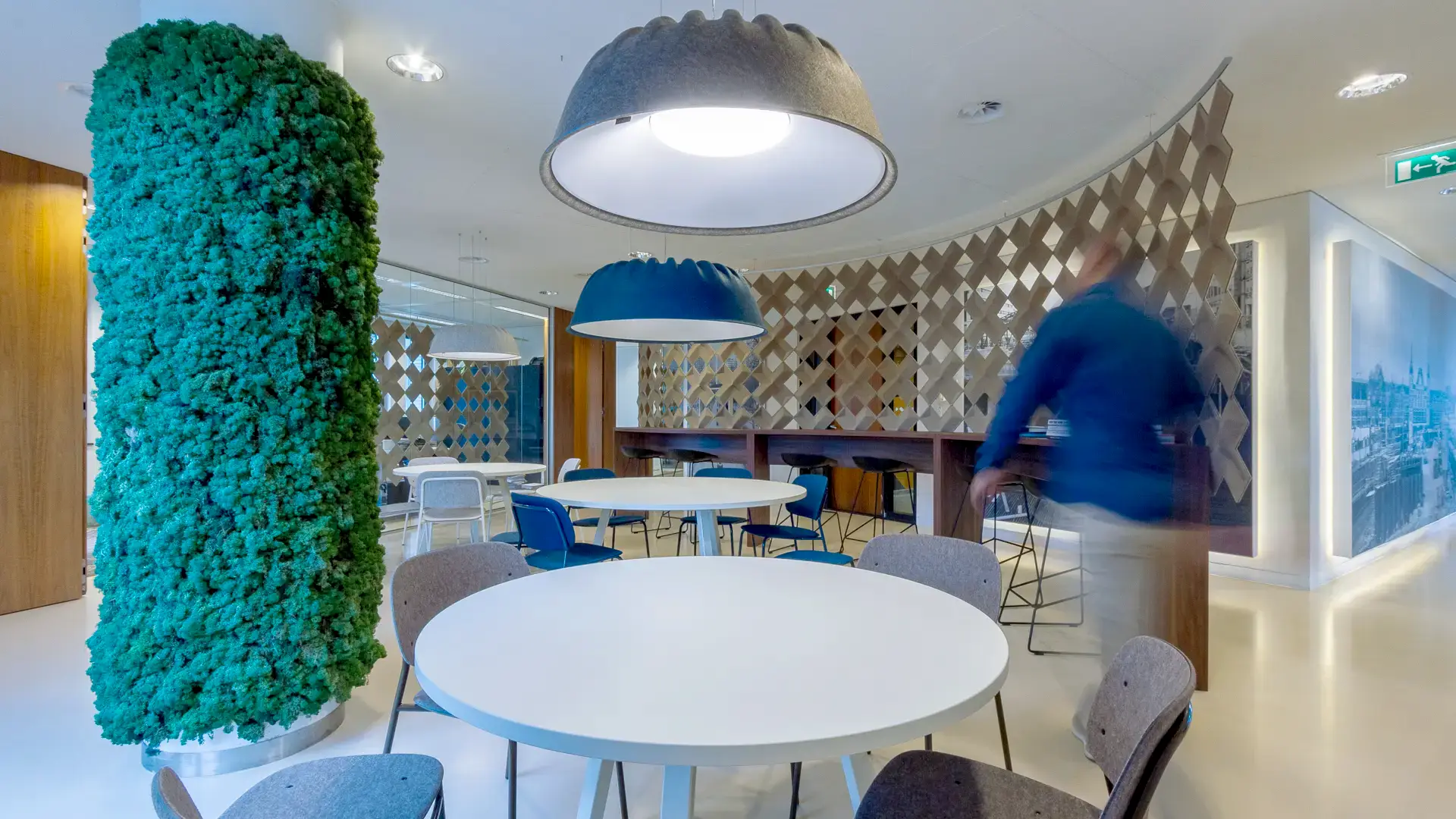 Voor het bestaande kantoor aan het IJdock in Amsterdam was de ontwerpvraag om de vergaderruimte aan te passen en de lunchruimte multifunctioneel te maken. We hebben dat in samenwerking op een praktische wijze kunnen doen en van de entree een multifunctionele wacht/lunch en ontmoetingsplek gemaakt.